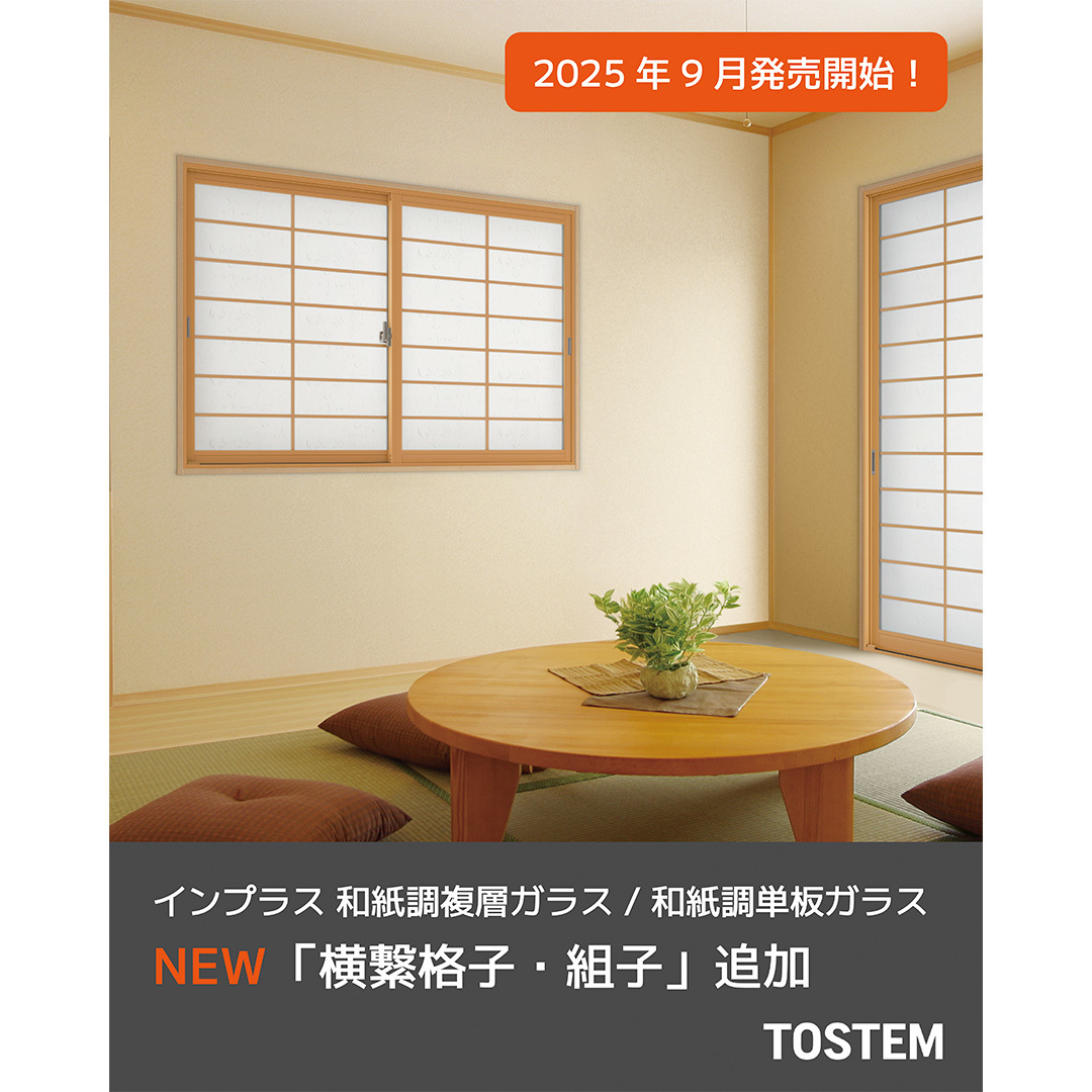 9月発売開始!インプラス和紙調ガラス「横繁格子・組子」