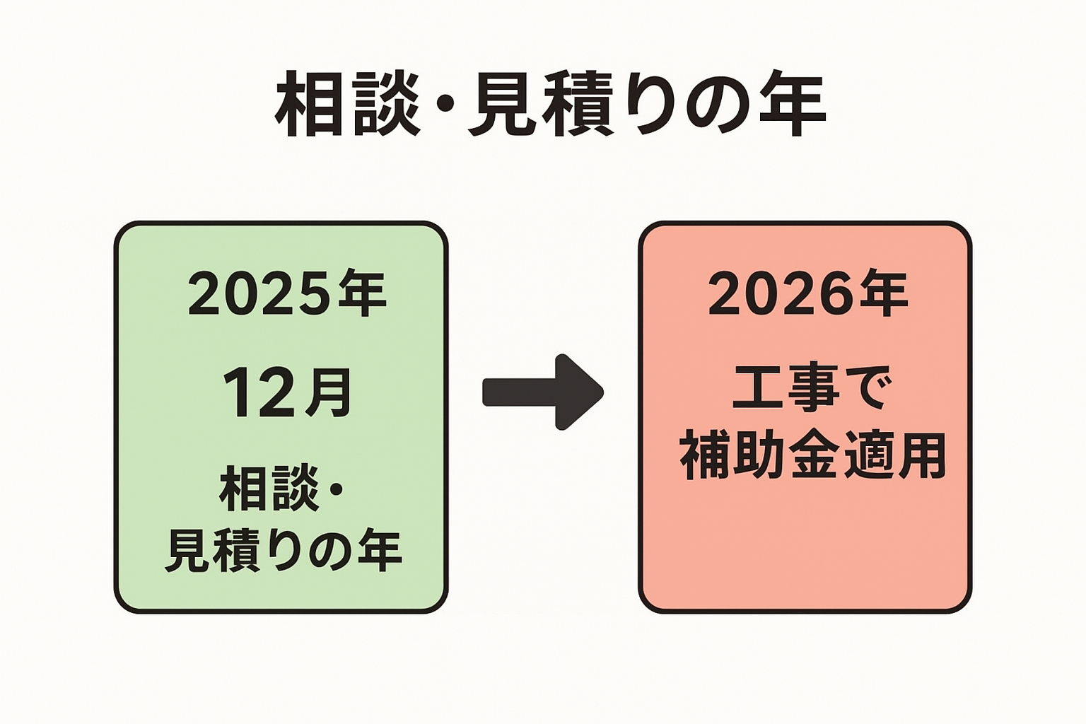 ただし、弊社の2026補助金は 対象工事が2026年スタート になります。