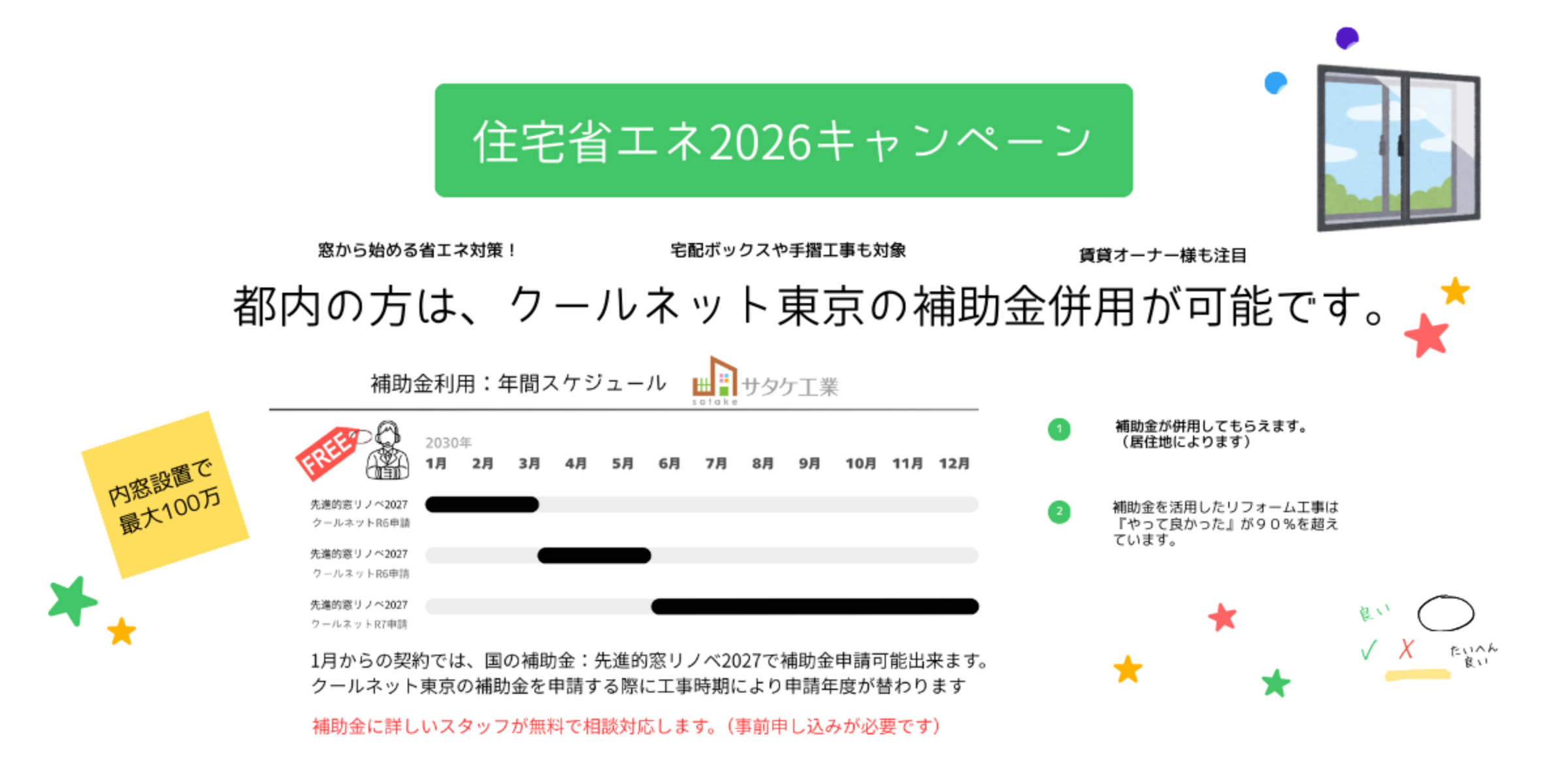 【先進的窓リノベ補助金】を利用して、内窓(二重窓)設置工事を予定していましたが、設置の際に部屋の内側にふかし枠が必要なことが判明。